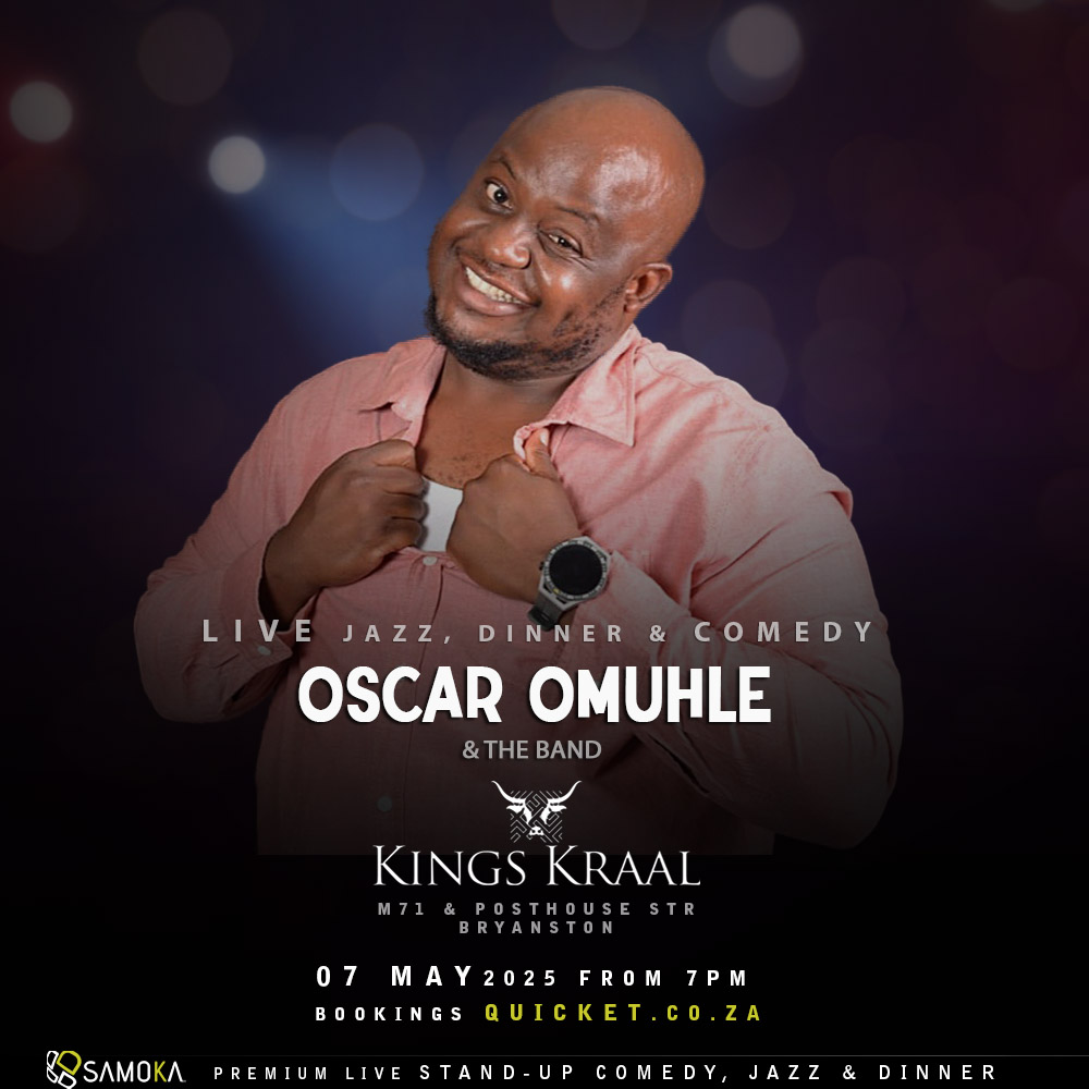 LIVE Jazz, Dinner & Comedy with Oscar Omuhle & Friends ft. The Kings Kraal Band at Kings Kraal, Bryanston, JHB 07 May 2025