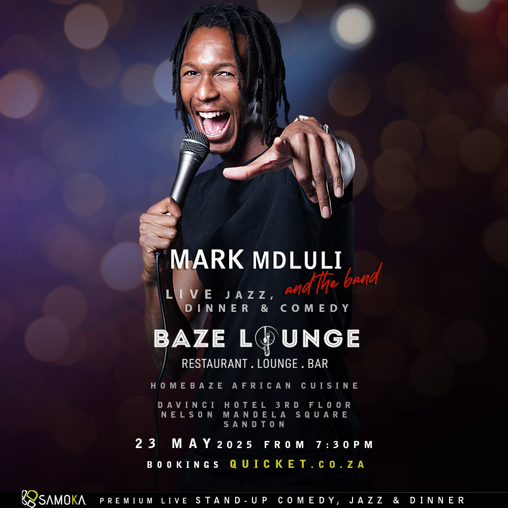 LIVE Jazz, Dinner & Comedy with Mark Mdluli & The Band at BAZE LOUNGE, Da Vinci Hotel 3rd Floor, Sandton 23 May 2025