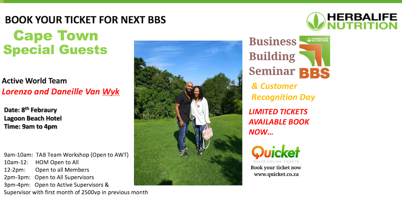 Herbalife Business Building Seminar -BBS & Shake Tasting - FEBRAURY- Cape Town