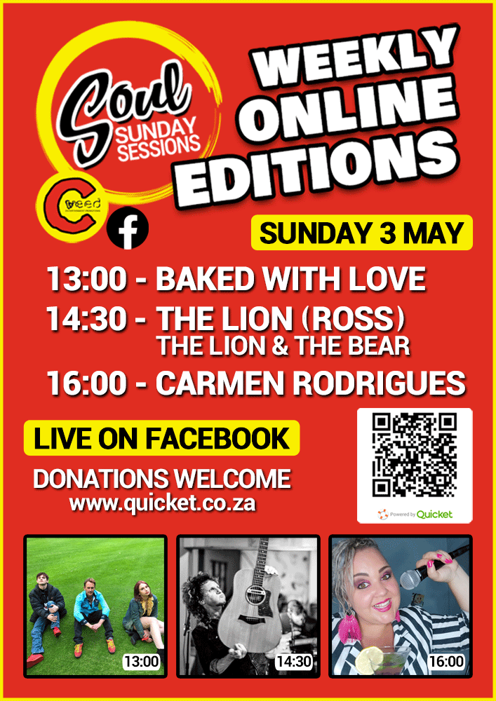The weekly line-ups will be announced and streamed on the Soul Sunday Sessions Facebook page at https://www.facebook.com/cweedevents/