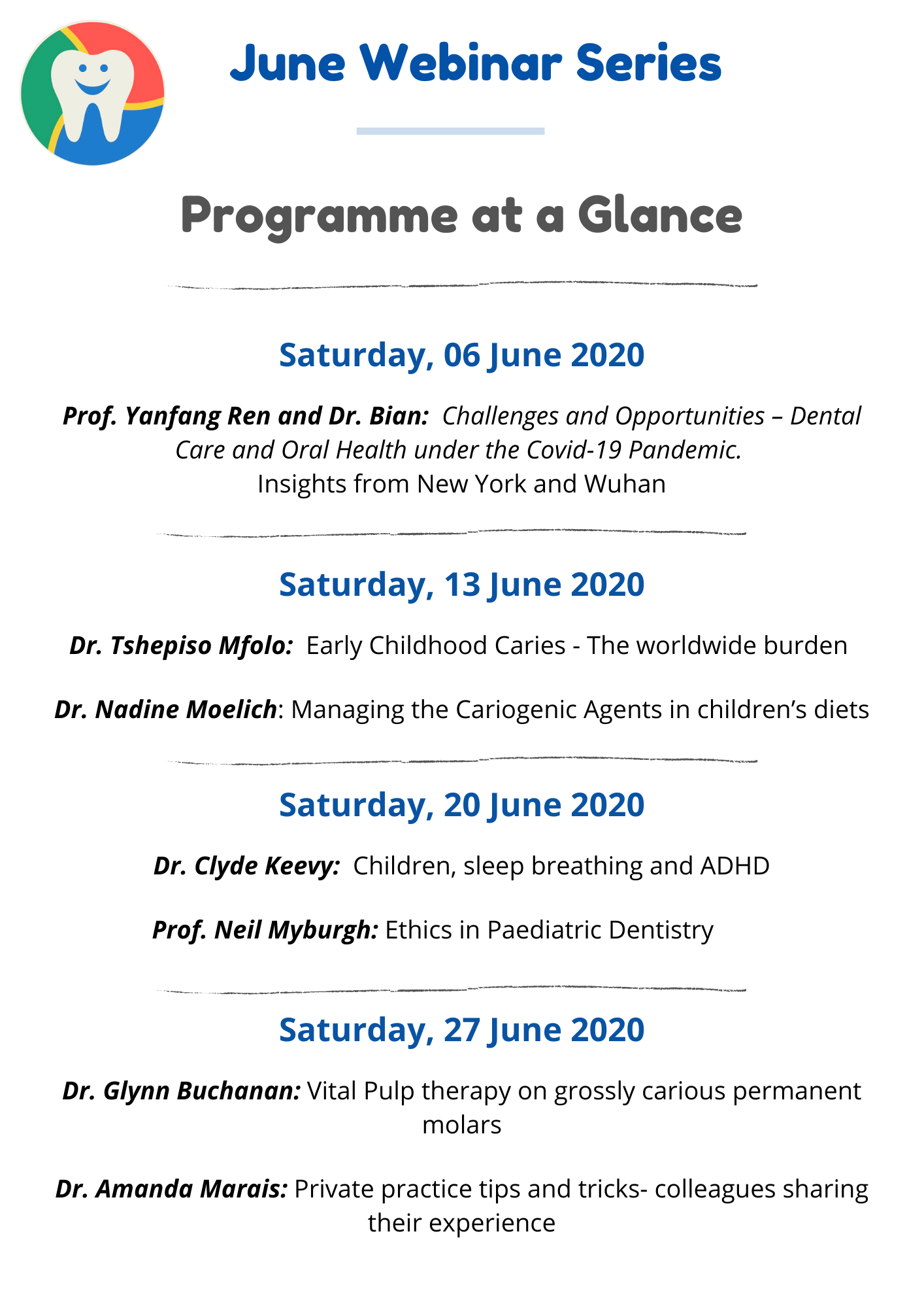 You can hear Dr. Mfolo speak on Early Childhood Caries in SESSION TWO on 13 June 2020 at 10am.