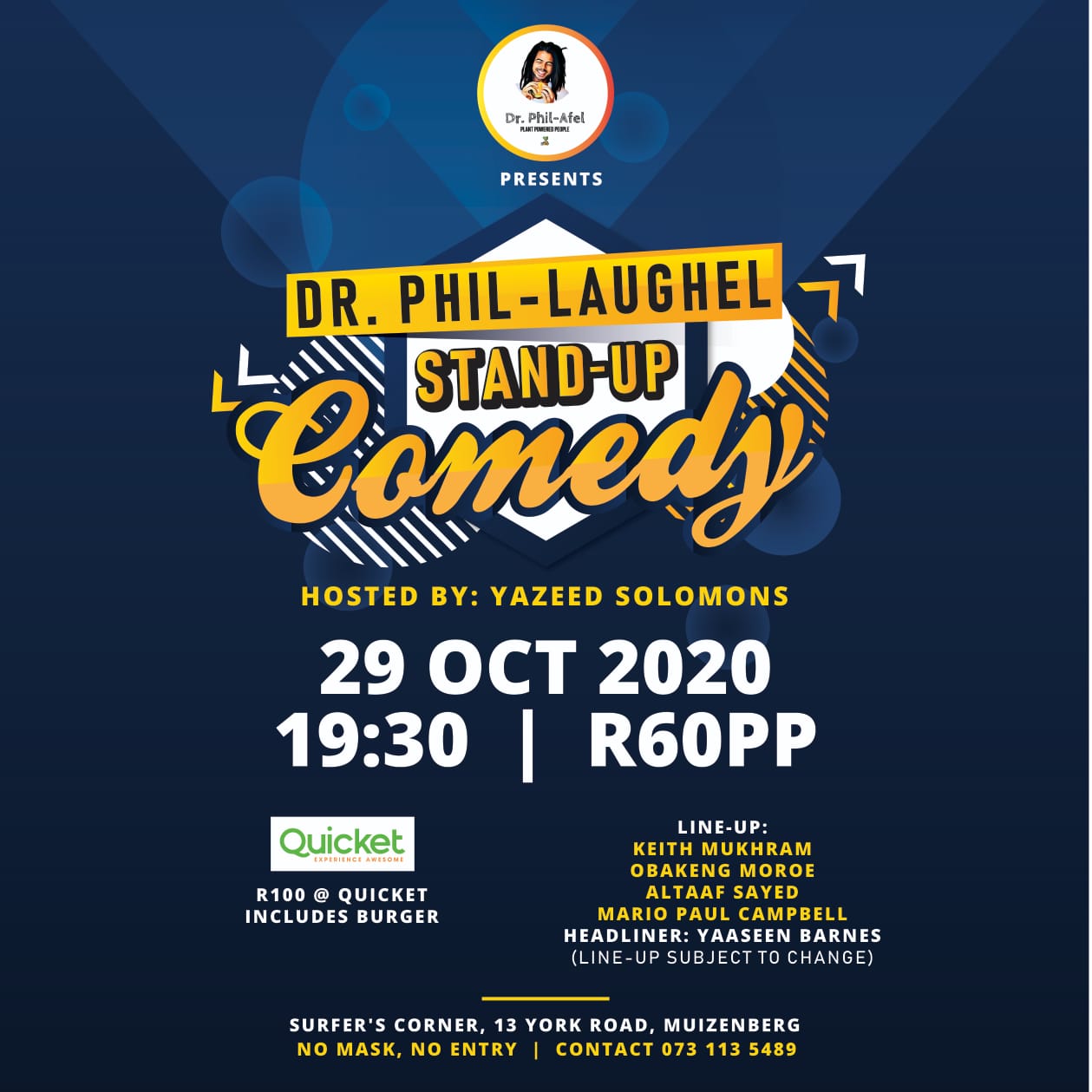 Dr Phil-afel has it all: breathtakingly beautiful ocean views, the most delicious vegan cuisine Cape Town has to offer, and now; a stellar line-up of stand-up comedians ready to crack you up and make you go crazy, at Dr. Phil-Laughel Comedy Nights.