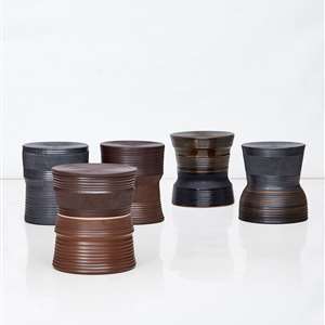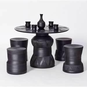 A master of hand-thrown ceramics, Chuma Maweni's distinctive approach combines contemporary hand-coiled shapes marked with precisely patterned incision. From his studio in Woodstock, Cape Town, he makes exquisitely crafted ceramic vessels and furniture, the latter finding their largest form to date in his sought-after Imbizo series of tables, side-tables and stool.