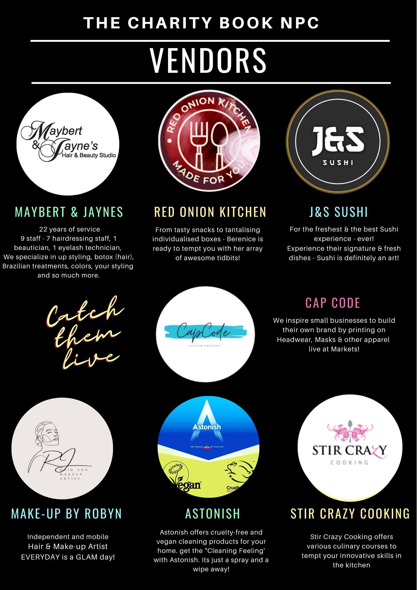 For more information on this you can email [email protected] or check out the website on www.thecharitybook.co.za or link into our facebook page https://www.facebook.com/thecharitybookWC2/