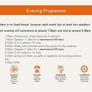 Expect an informal relaxed setting where you can hear two speakers in one evening and test your brain with a quiz or two.