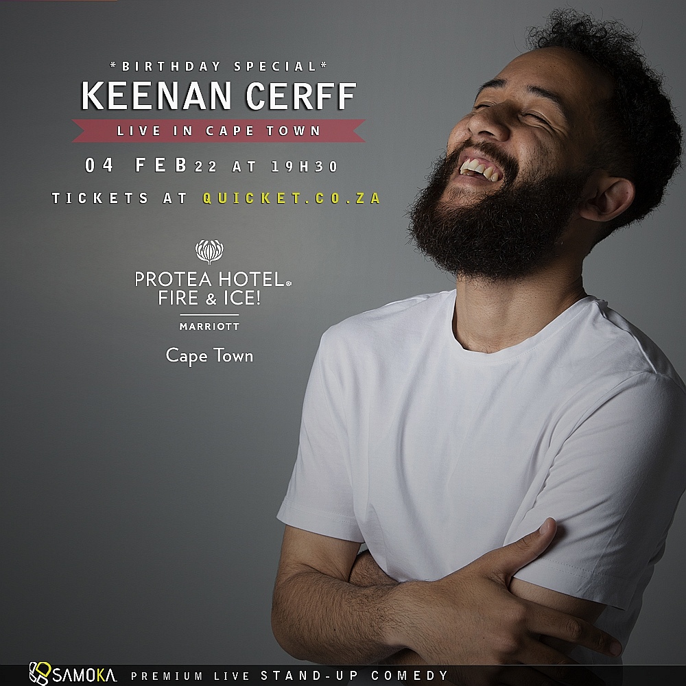 Keenan Cerff, a young rising star in the Stand-Up Comedy world, from Lavender Hill in Cape Town bringing you his BIRTHDAY Special One Man Stand-Up Comedy showcase to The Protea Hotel Fire & Ice! Cape Town on 04 Feb 2022.