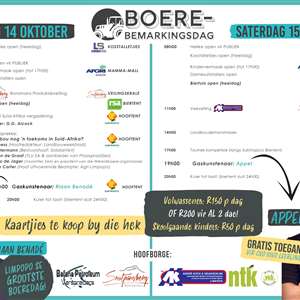 - Geleentheid om jou besigheid se banniere teen heinings van die Vivo Boerebemarkingsdag op te rig.
