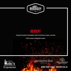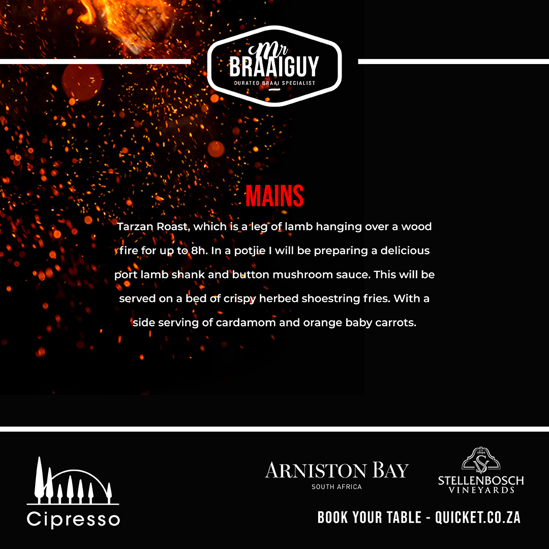 Mr Braai Guy is an Open Fire Chef who serves and guides guests through incredible dining experiences. Mr Braai Guy has the menu, mastery and magnetism to turn each occasion into a celebration.