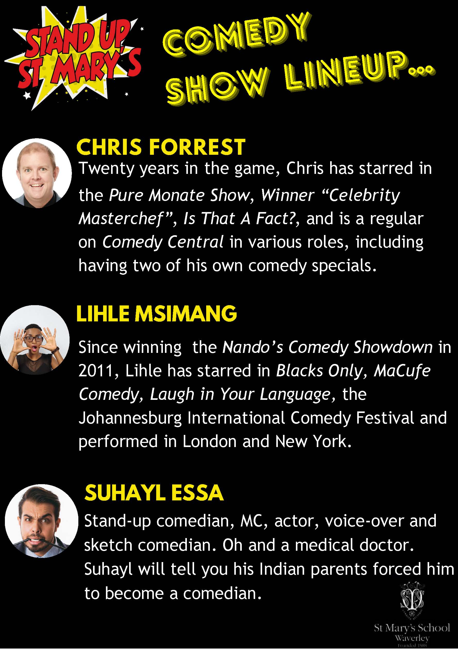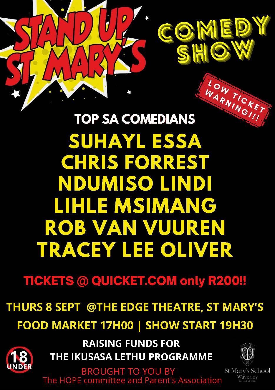 Fret no more because the St Mary’s HOPE committee and Parent’s Association have joined forces to proudly present the first ever Stand Up St Mary’s Comedy Show.