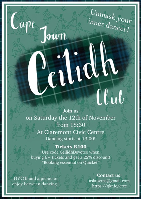 From there it is all just great fun as we try other simple dances and gain confidence. Other people on the floor will be dancing with you, for some dances you have a partner for others, not. Footwork is optional and most people just skip along in a way that suits them. We take a break after about an hour to let people catch their breath, have a drink and chat, and then we continue until everyone has had enough. There is a Scottish flavour to all of this but you don't