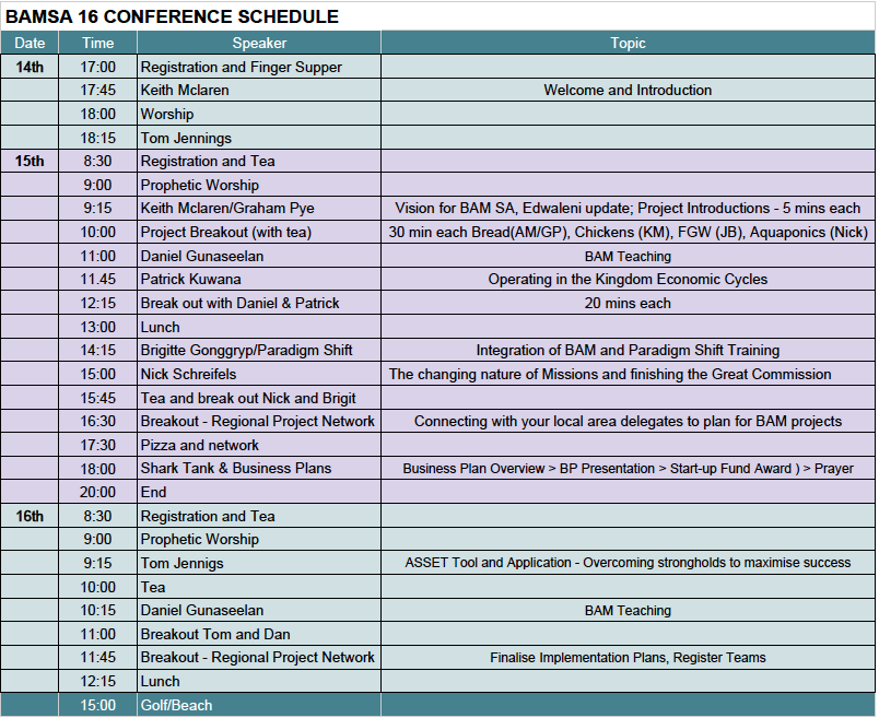 BAM SA 16 is about showing you the practical steps of taking the blessings of God to help people rethink their lives, provide skills and mentor them in their own businesses.