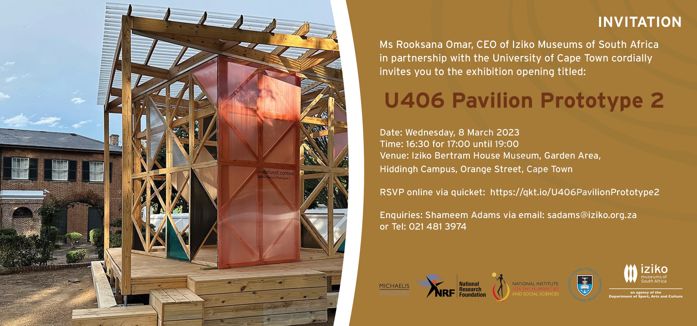 Ms Rooksana Omar, CEO of Iziko Museums of South Africa in partnership with the University of Cape Town cordially invites you to the exhibition opening titled: