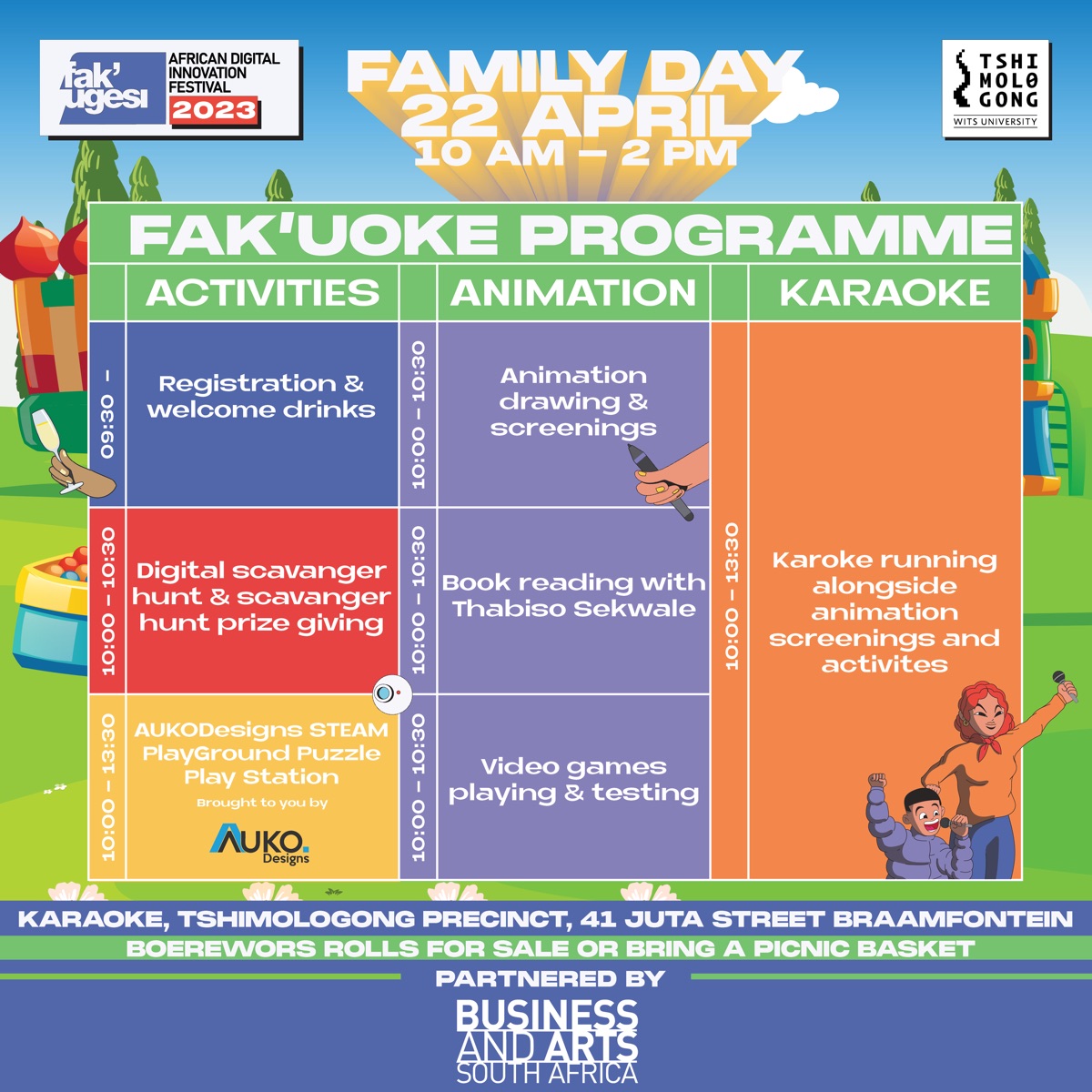 Fak'uoke Family Day is brought to you in partnership with Business and Arts South Africa visit basa.co.za to see their work securing greater involvement in the arts from businesses operating in South Africa.