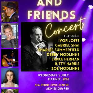 Join IVOR JOFFE and FRIENDS for a magnificent Matinee Concert hosted by popular and renowned performer IVOR JOFFE and featuring versatile entertainers GABRIEL SHAI and CHARLES SUMMERFIELD, multi-talented artists DEBBY MODLINNE and LANCE HERMAN as well as young award-winning Musical Stars KITTY HARRIS and ZOE MODLINNE. Highlights include many of your musical favourites from Golden Oldies to Rock 'n Roll, Pop to Broadway and so much more! There will also be a Surprise Guest Artist and some Prizes to be won, so DO NOT MISS this uplifting Concert which promises to be a vibrant Showcase of outstanding Entertainment to keep you warm on a winter afternoon!