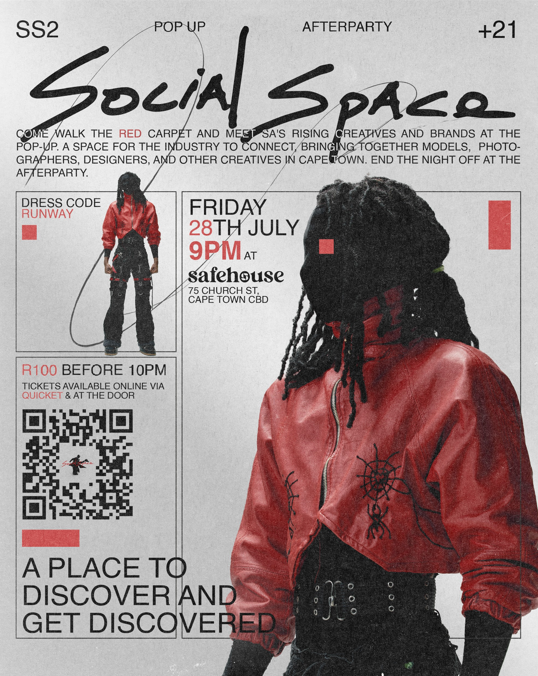 Come walk the red carpet and meet SA's up and coming designers & brands at the pop up. A space for the industry to connect, bringing together models, photographers, designers, and other creatives in Cape Town. End the night off at the afterparty.