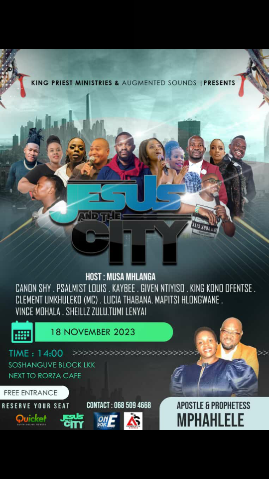 Hello family i am hosting a worship gathering called Jesus and the city on my birthday its free entry but donations are most appreciated if willingly so