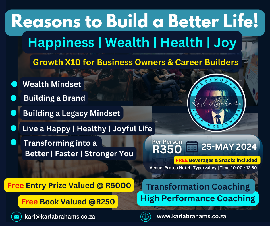 Karl Abrahams has built this system over a 23-year time period, using his Education, Work Experience, Business Experience, High-Performance Business Coaching and Life Coaching experience, Knowledge and Research, this includes all other research he has done over the year, as Data to build this Powerful Transformation System.