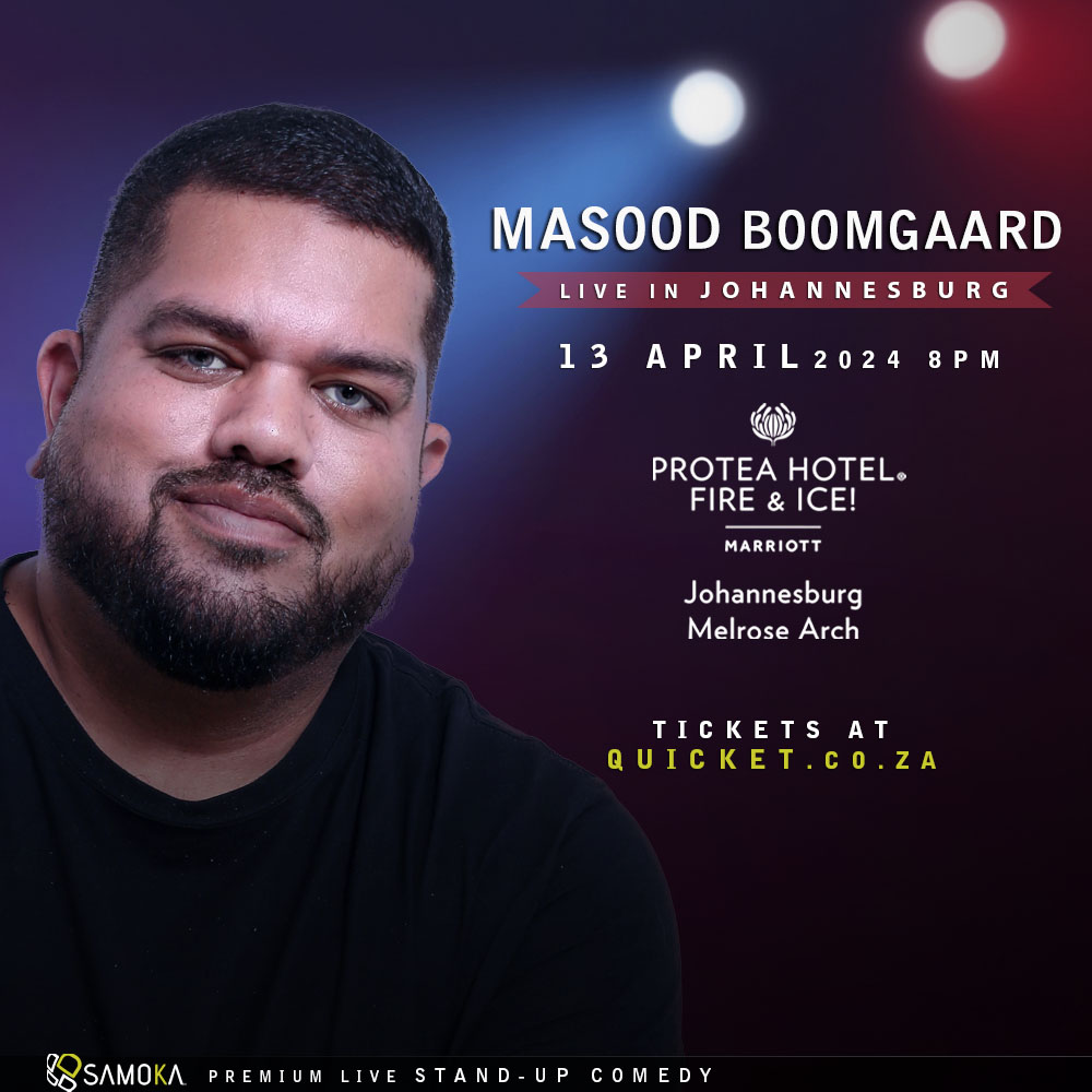 Masood Boomgaard LIVE in Johannesburg at The Protea Hotel Fire & Ice! Melrose Arch 13 April 2024