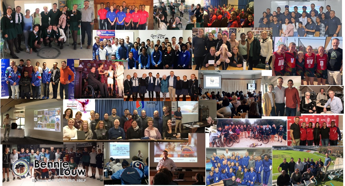 Bennie het meer as 15 jaar ondervinding om afrigters, ouers, sportmanne en -vroue, van amateur tot wêreldkampioene, met hul verstandelike benadering tot sport te help. Bennie werk met kliënte op individuele grondslag en bied ook werkswinkels en spangeleenthede regoor Suid-Afrika aan.