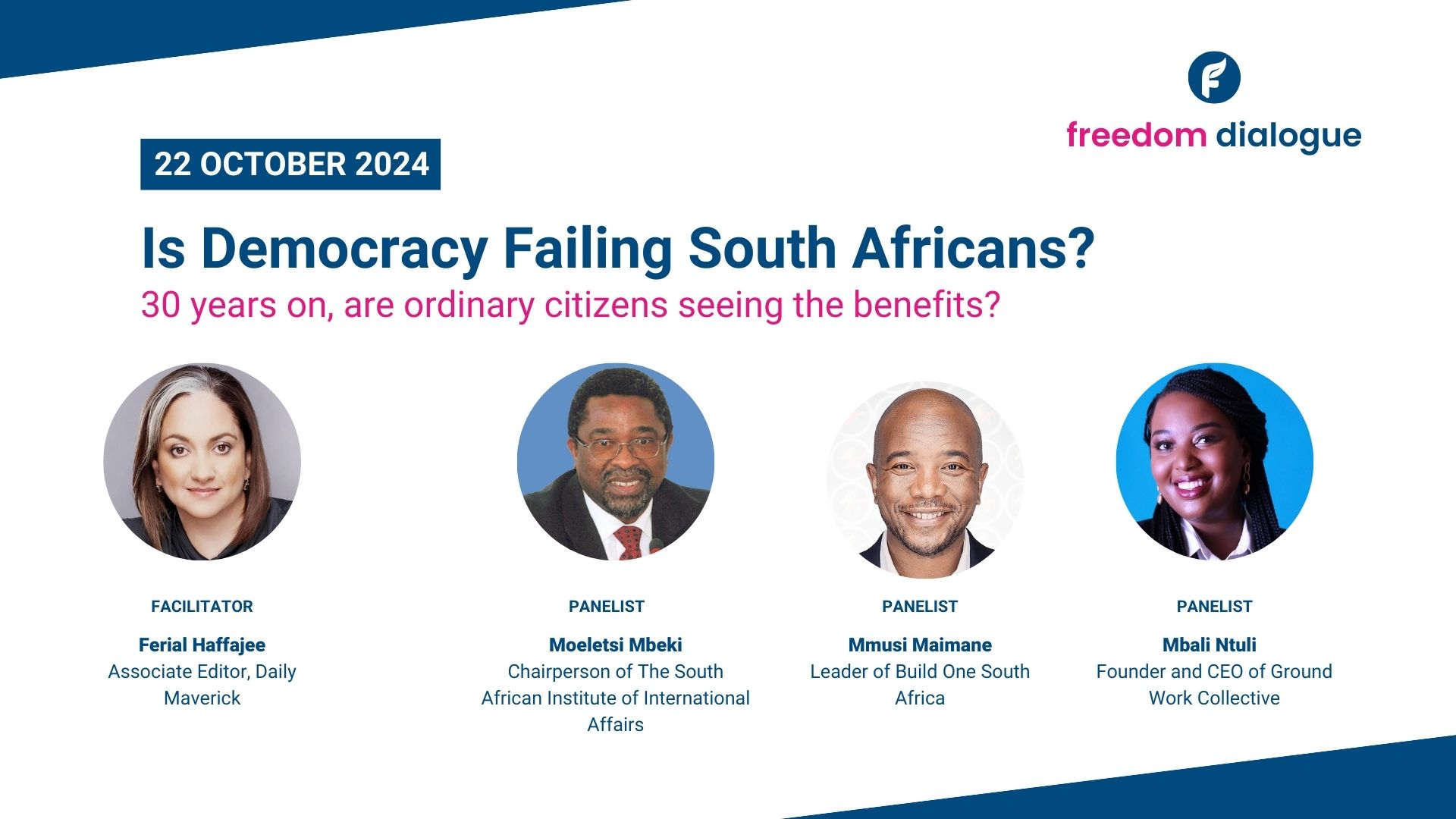 In the third and final instalment of the *Freedom Dialogue 2024* series, we will confront this crucial issue head-on. The discussion will explore whether South Africa’s democratic gains are being upheld and, more importantly, what must be done to safeguard the progress made since the end of apartheid.
