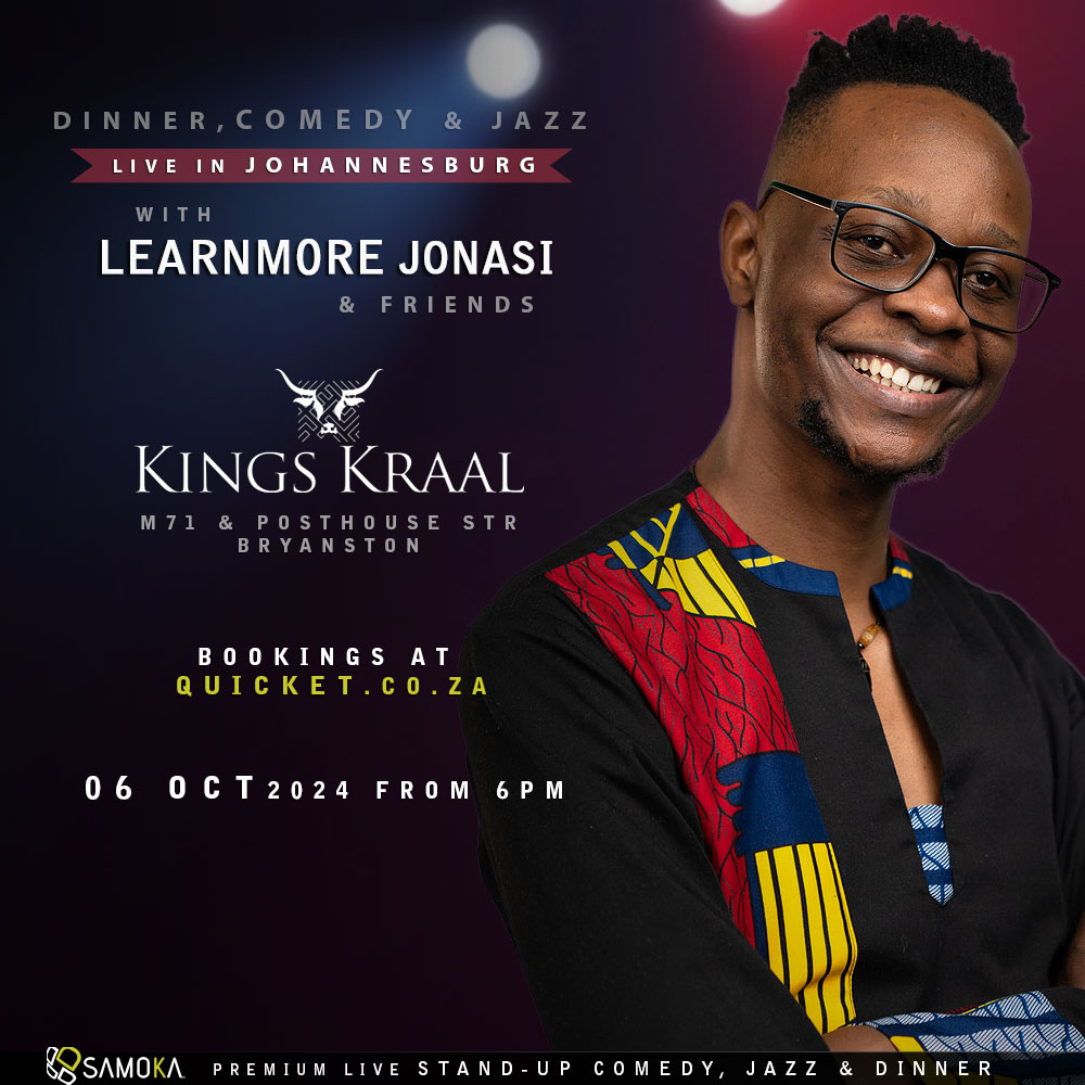 LIVE Jazz, Dinner & Comedy with Learnmore Jonasi & Friends at Kings Kraal, Bryanston, JHB 06 October 2024