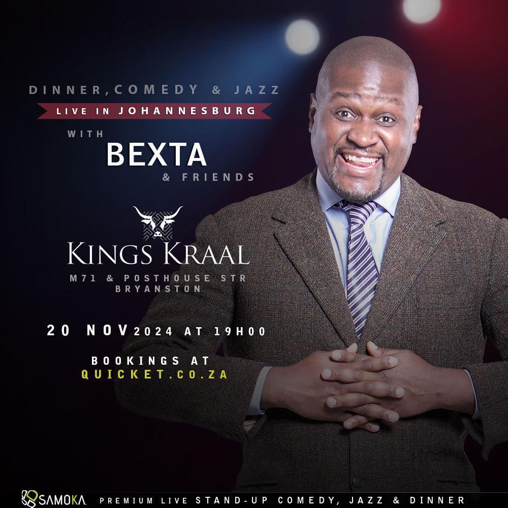 Dinner & Comedy with BEXTA & Friends LIVE in Johannesburg at Kings Kraal, Bryanston 20 November 2024