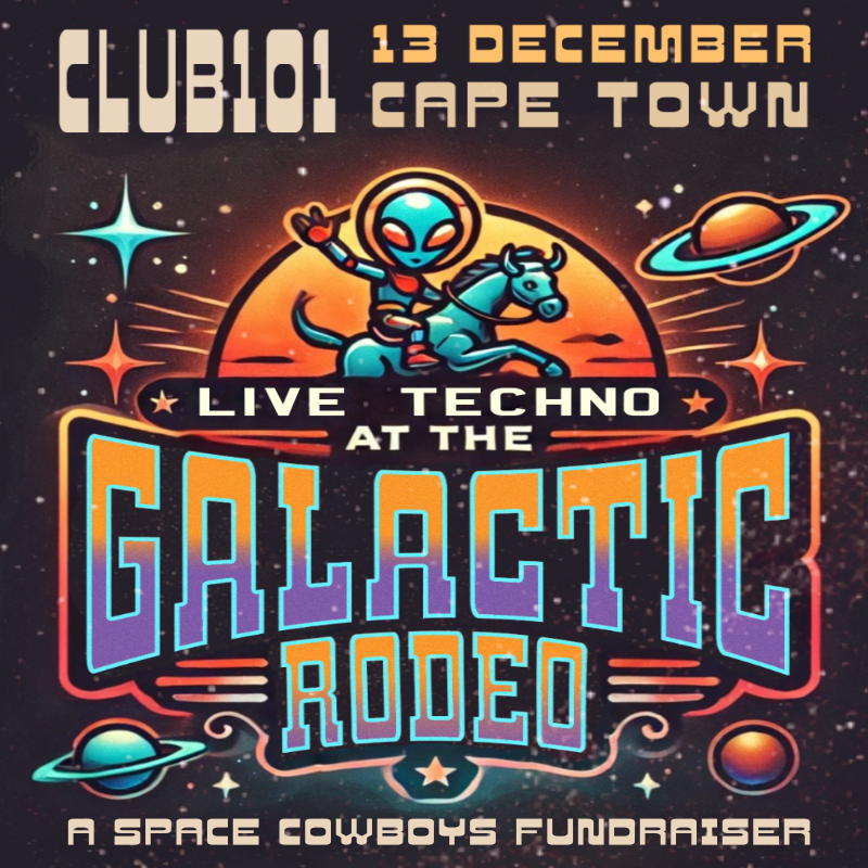 Friday 13th is techno time with the Space Cowboys Have Landed - Afrikaburn Galactic Rodeo fundraiser at 101 Castle Street! Live performances by Matt Willis and Mark Valsecchi supported by your favourite Space Cowboys techno DJs. Expect spanking tunes and dirty beats it will be a night to remember!