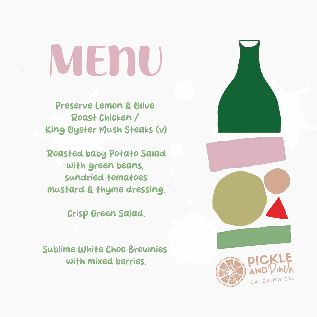 Pickle and Pinch Catering Co. will be curating a meal paired with 2 delicious wines.