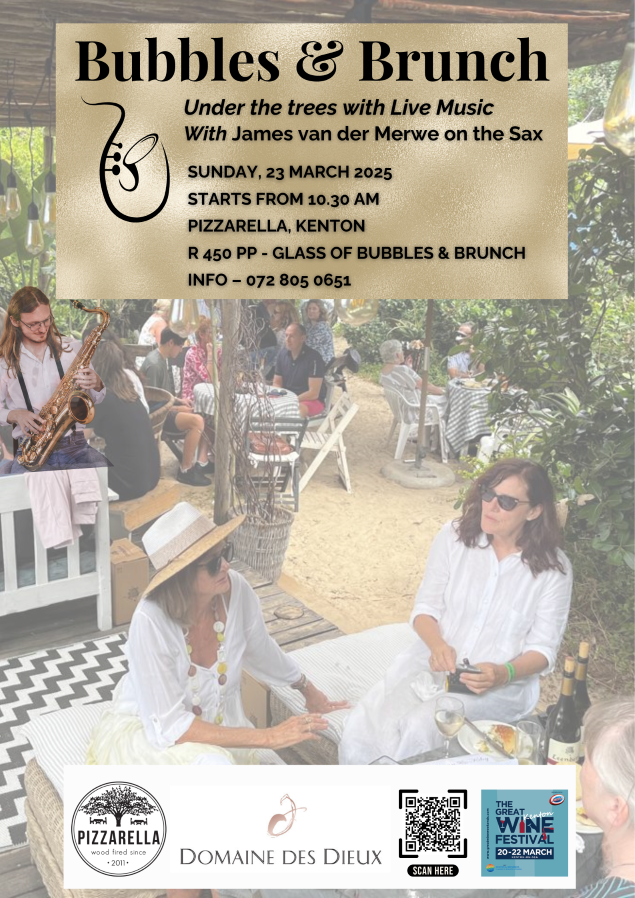 Tickets: R450 PP – includes a glass of bubbles from Domaine des Dieux & a delicious brunch.