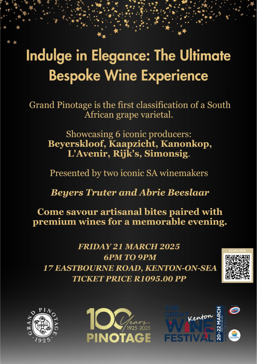 Limited seats available—secure your place for this exclusive Grand Pinotage experience! Indulge in the finest wines, meet legendary winemakers, and savour an unforgettable evening of elegance. Don’t miss out—book now!