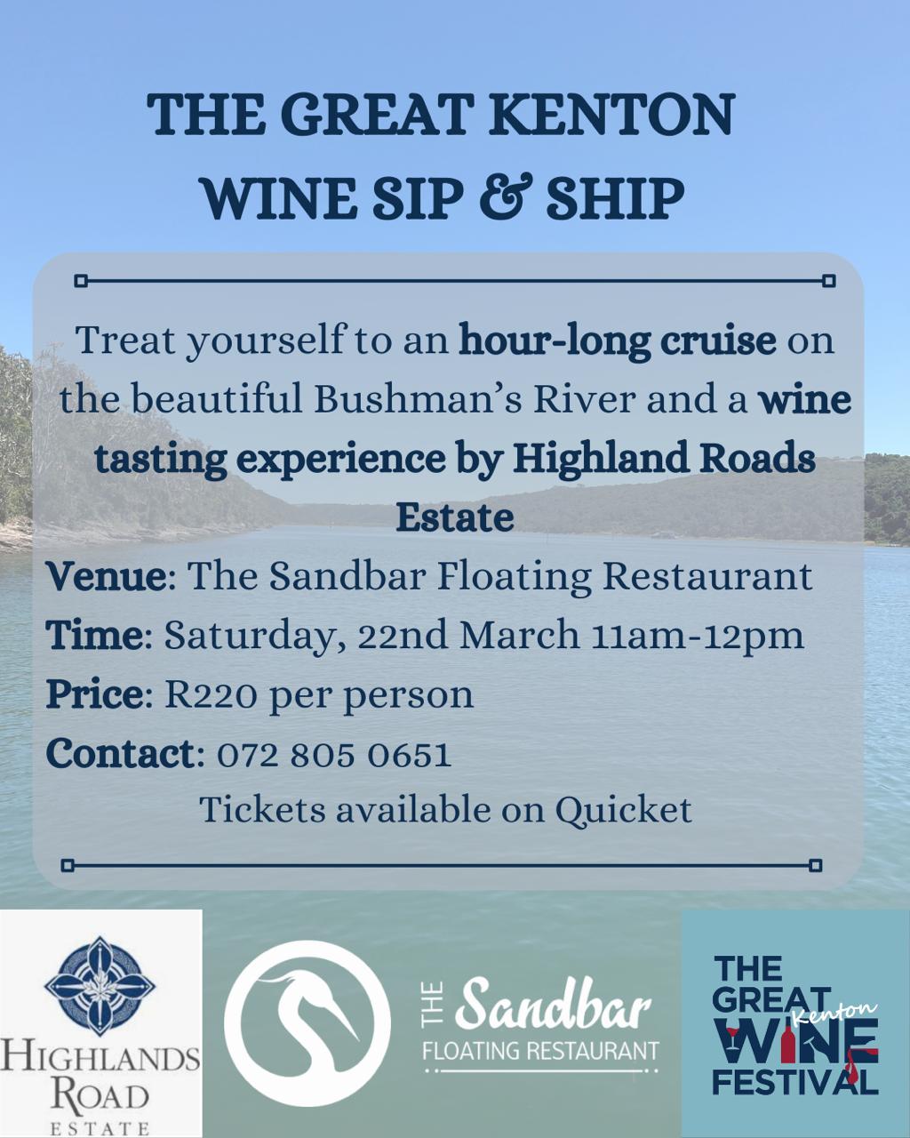 Treat yourself to an hour-long boat cruise on the beautiful Bushmans River and a wine-tasting experience by Highlands Road.