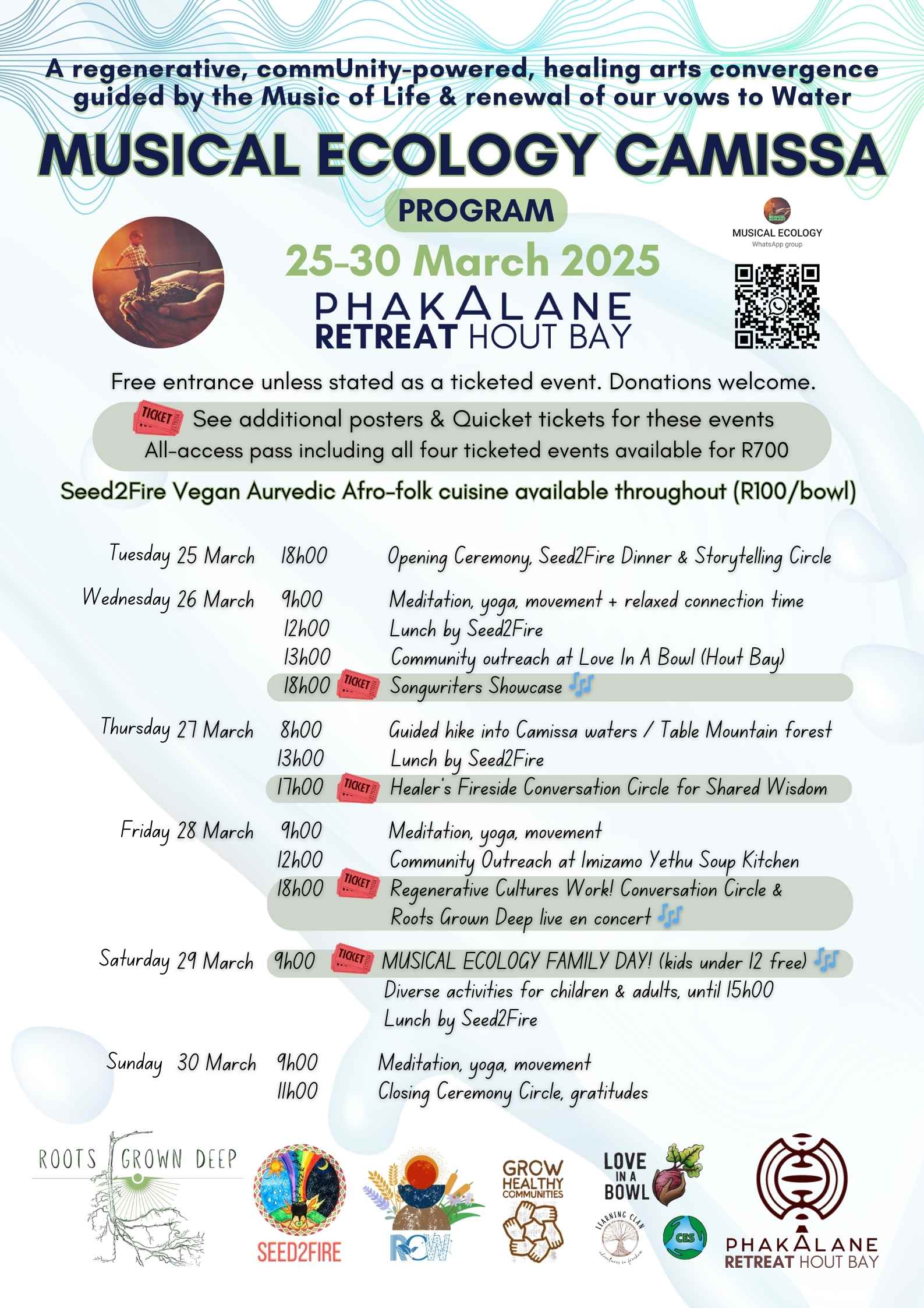 NB: We welcome additional donations to support the Musical Ecology and Grow Healthy Communities vision for a thriving grassroots. We aim to raise R18,000 during this event through tickets and donations. This will go to nurture the participants in this regenerative visionary event, and power up our capacity to increase these types of commUnity-powered gatherings.
