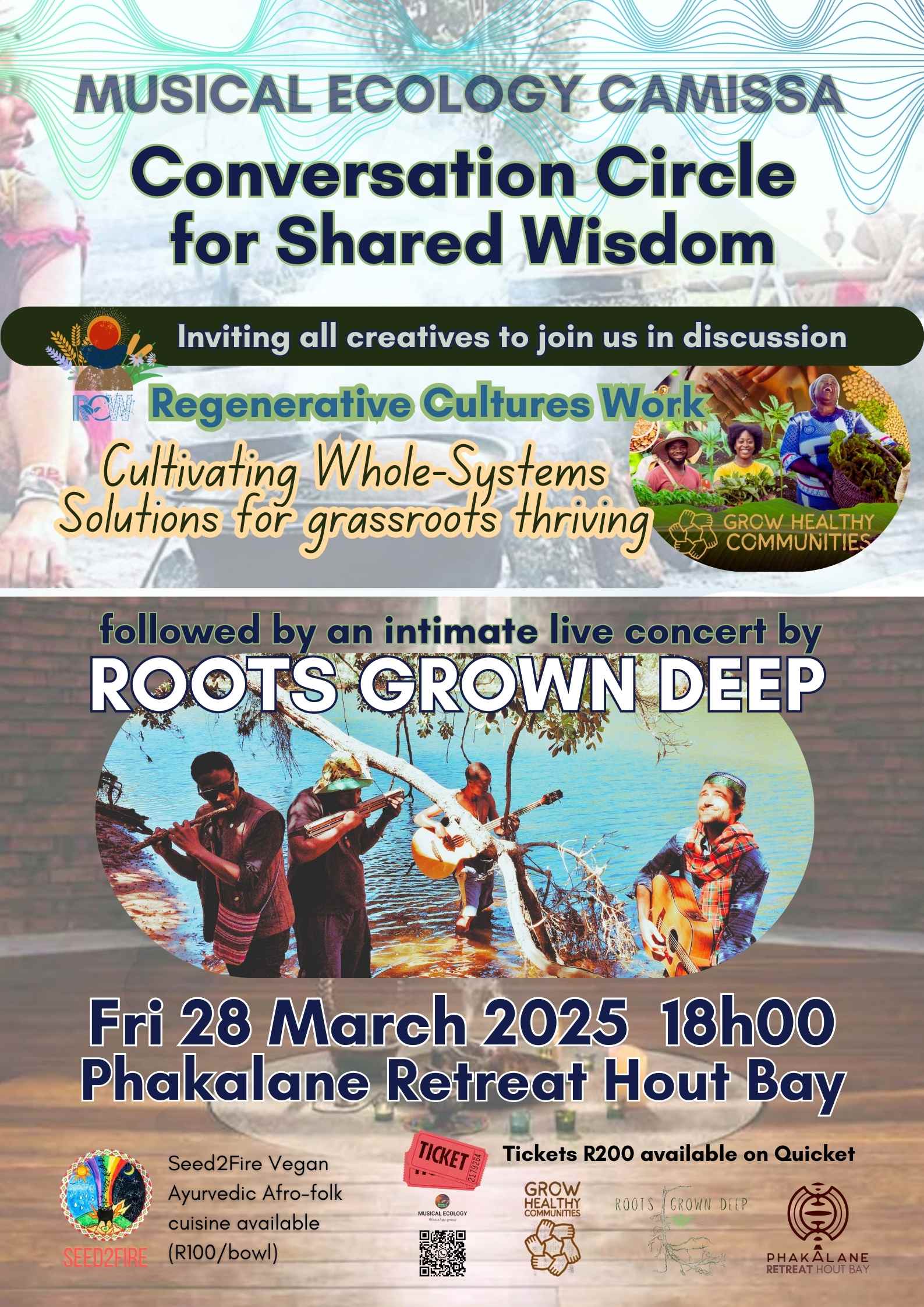 Tickets are R200. Further donations welcomed to support the Musical Ecology movement of nodal regenerative activation.