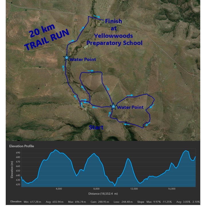 All runners will be transported to the start at the neighbouring farm. You will do a 5 km loop through livestock camps, before returning to the school along the dirt road to the finish.