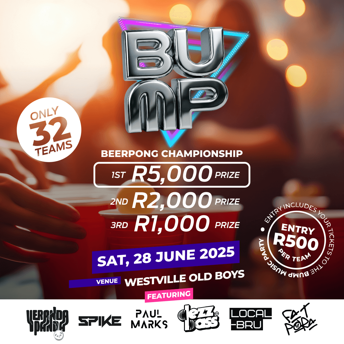 R500 per team (includes entry for both players into the BUMP party), with runner-up prizes and a special prize for Best Dressed Team—so come ready to compete and turn heads.