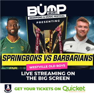 Live streaming the iconic SA Springboks vs Barbarians game on a full sound system. Feel every tackle, pass and try all together.