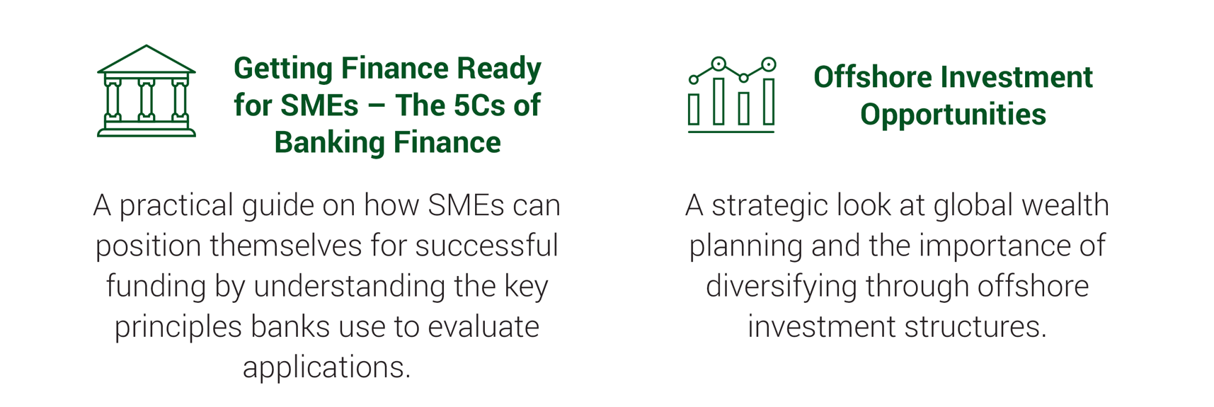 Now at the helm of JJH Group, Marie-Lou focuses on helping SMEs access funding by guiding them through the banking landscape and preparing them to become finance-ready. Her deep understanding of the “5 Cs of Banking” has made her a trusted advisor to business owners navigating growth and capital challenges.