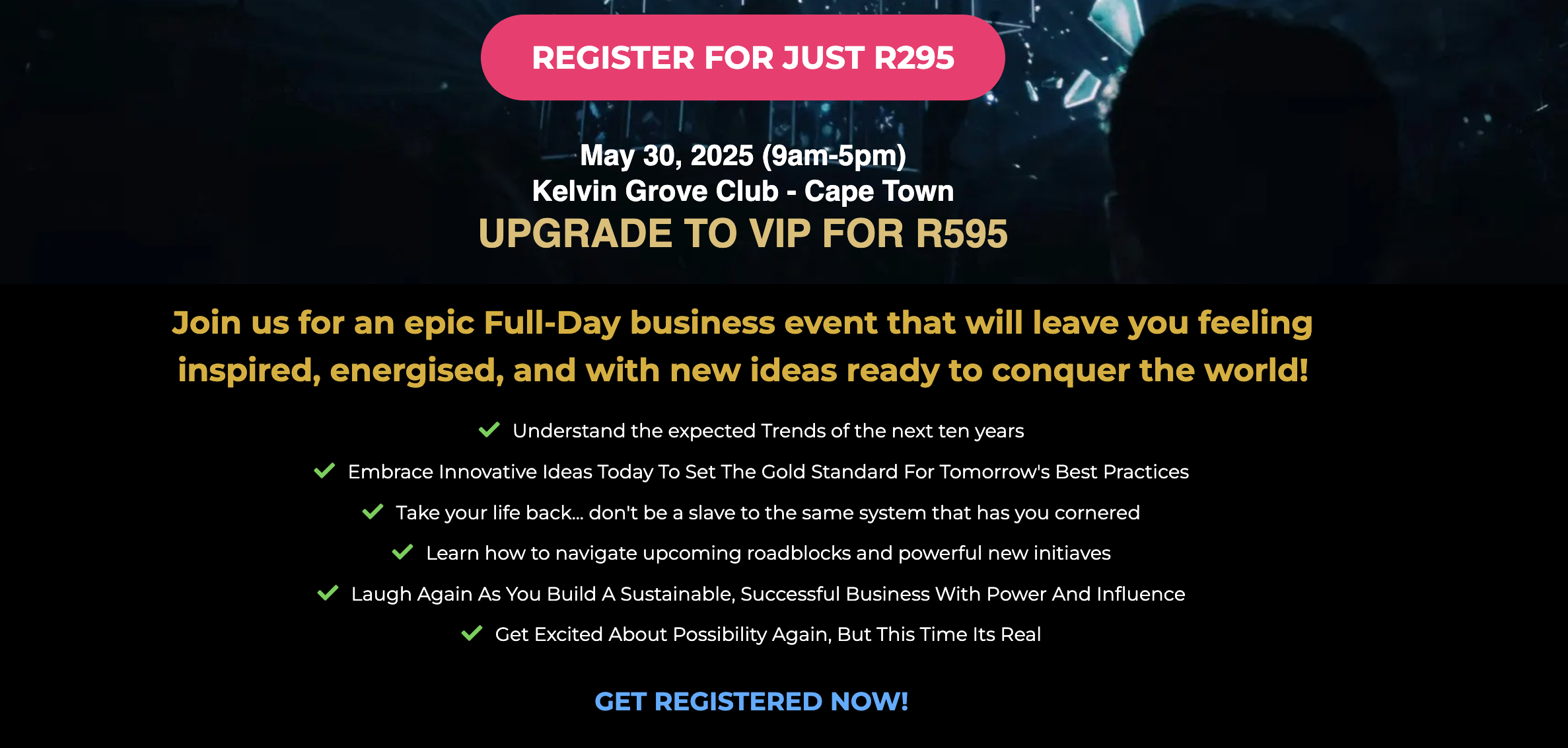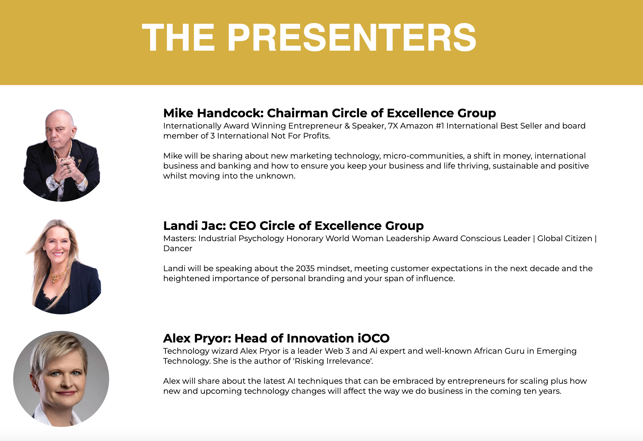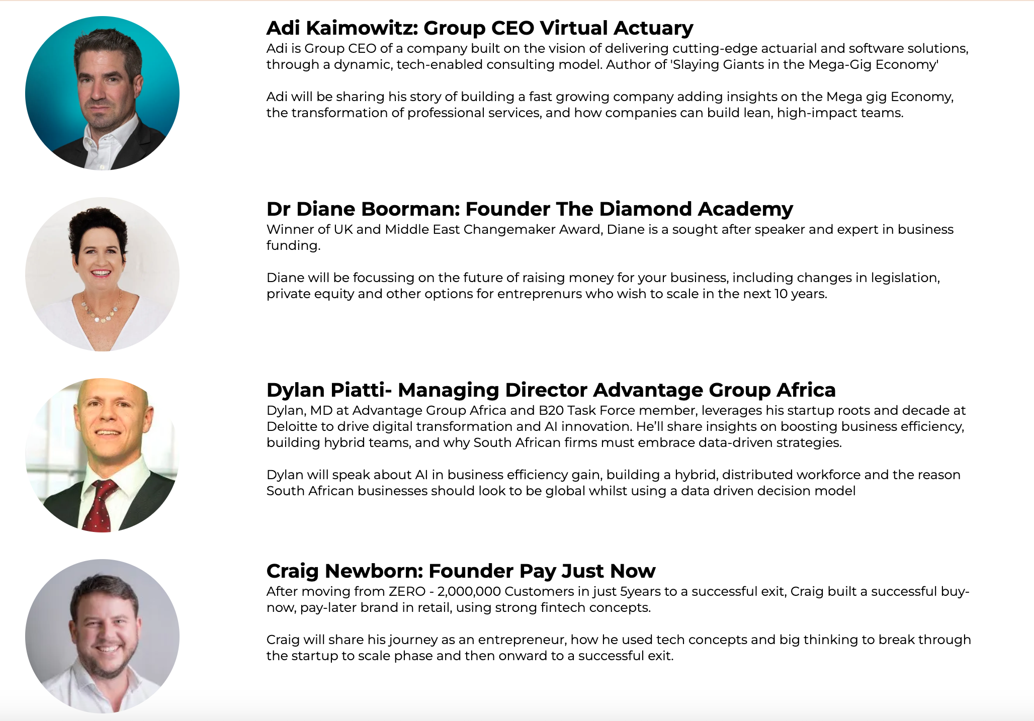 - As a participant, you will get to meet other like minds (we attract a certain type) and through that, you can create partnerships, and perhaps find some clients or even a financier. Expect the speakers to be interactive and if you purchase the VIP package there will be the opportunity to have your personal questions answered.