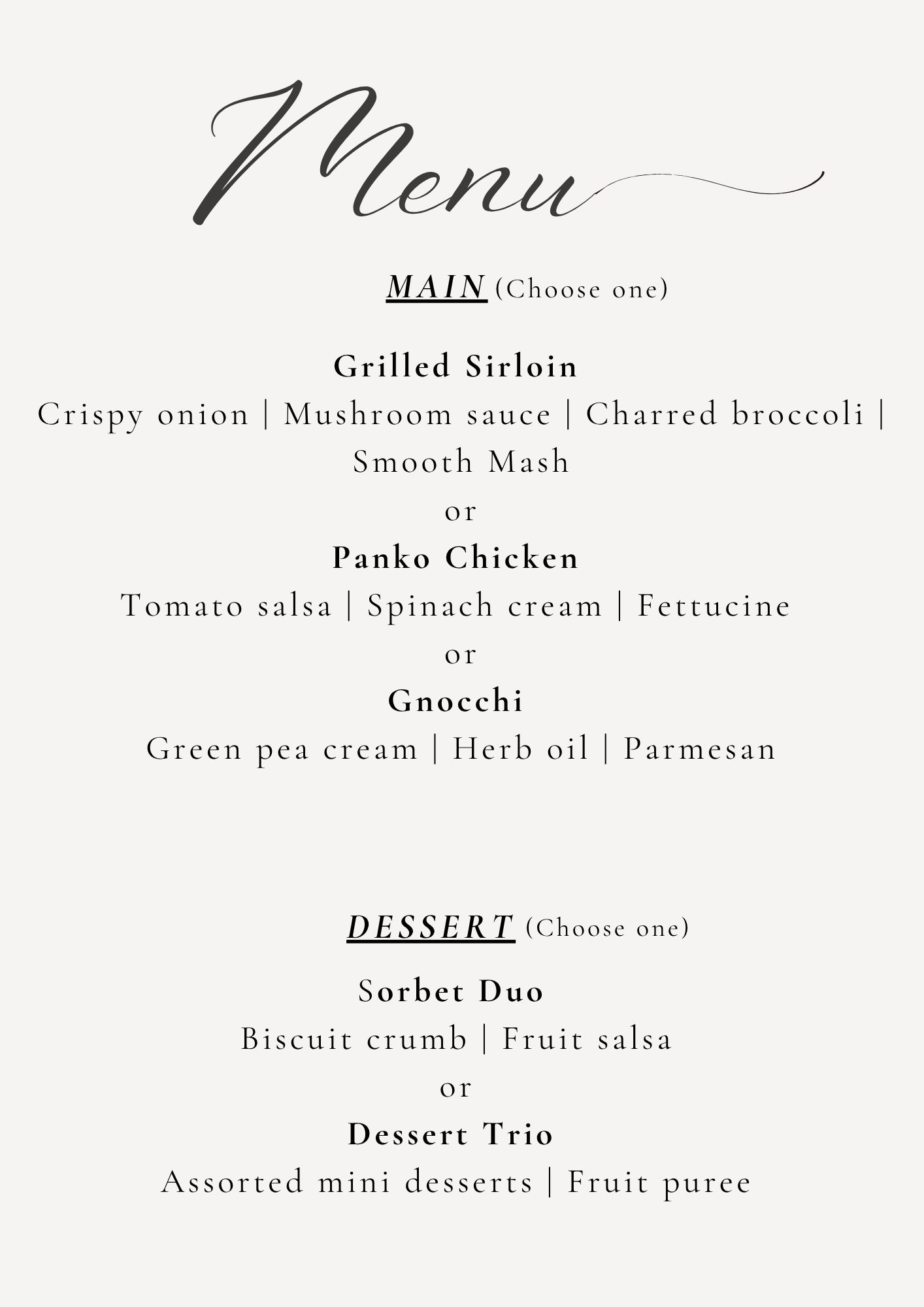 Dinner & Show menu