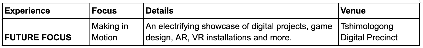 Future Focus: Experience Making in Motion: Step into Tshimologong - the beating heart of digital innovation in Braamfontein.