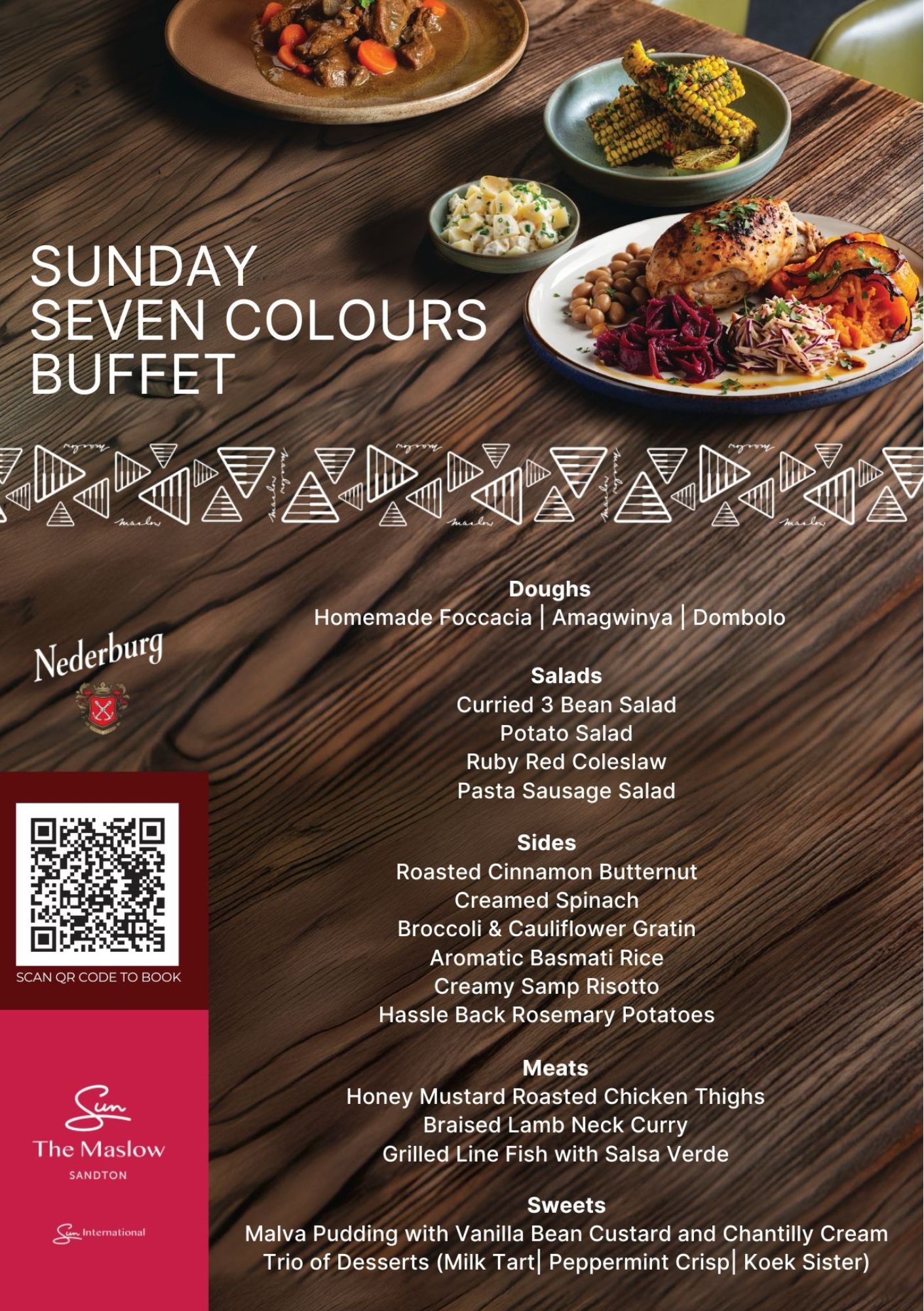 Indulge in a bottomless Seven Colours Sunday Lunch at The Maslow Sandton, where rich, vibrant flavours come together for a hearty and nostalgic feast. Gather your loved ones and make it a Sunday to savour.