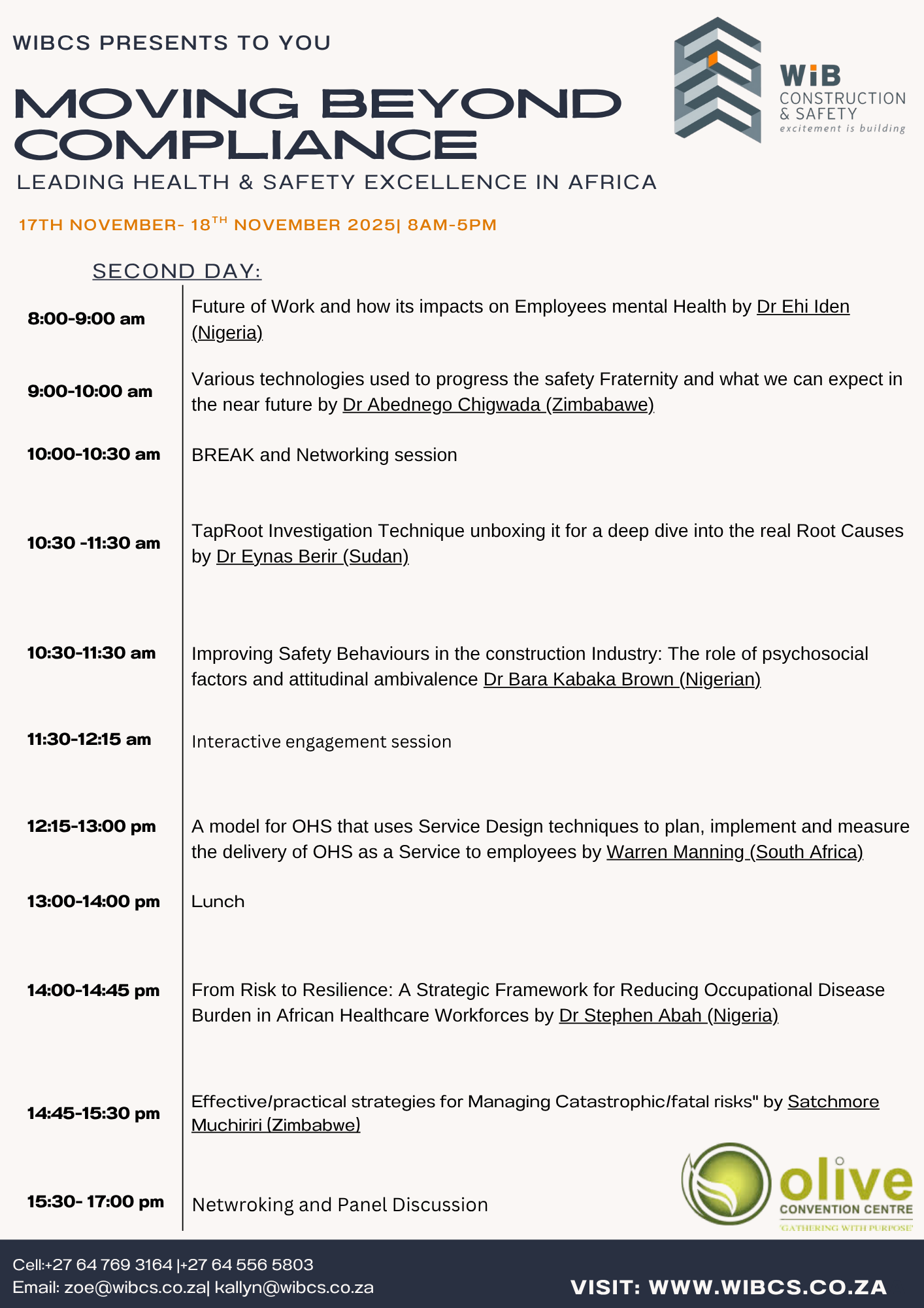 This landmark conference brings together health and safety professionals, business leaders, regulators, and innovators from across the continent to challenge traditional approaches and unlock new pathways to excellence.