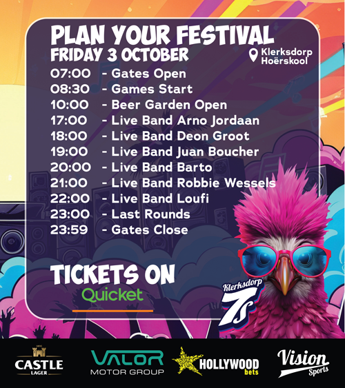 Whether you're a die-hard sports fan, music lover, foodie, or just here for the vibes – Klerksdorp Sevens is the festival that brings everyone together.