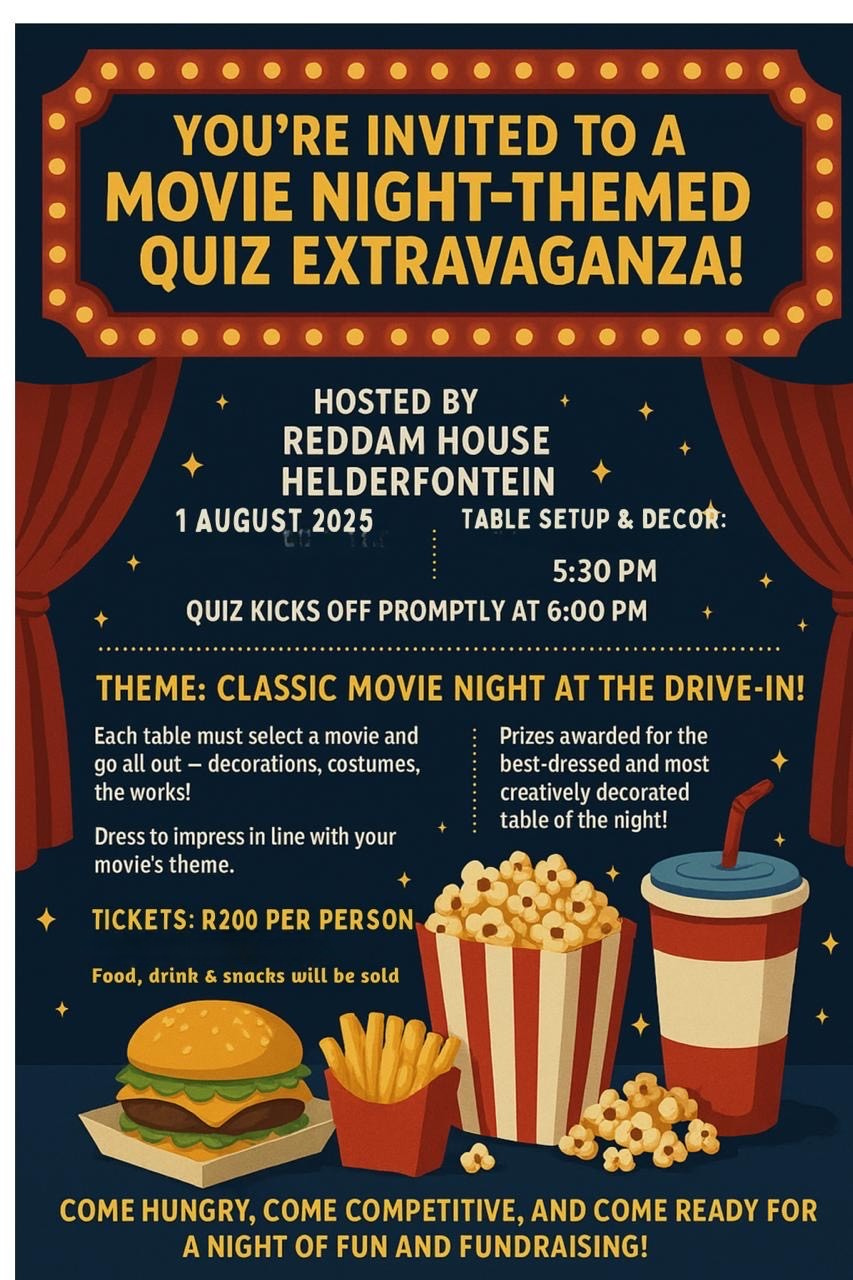Get ready to roll out the red carpet and put your movie knowledge to the test at the Movie Night-Themed Quiz Extravaganza hosted by Reddam House Helderfontein!