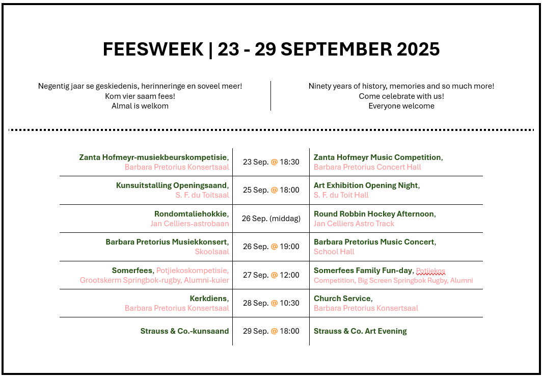 FEESWEEK 2025: KUNS, MUSIEK, SOMERFEES, ALUMNI