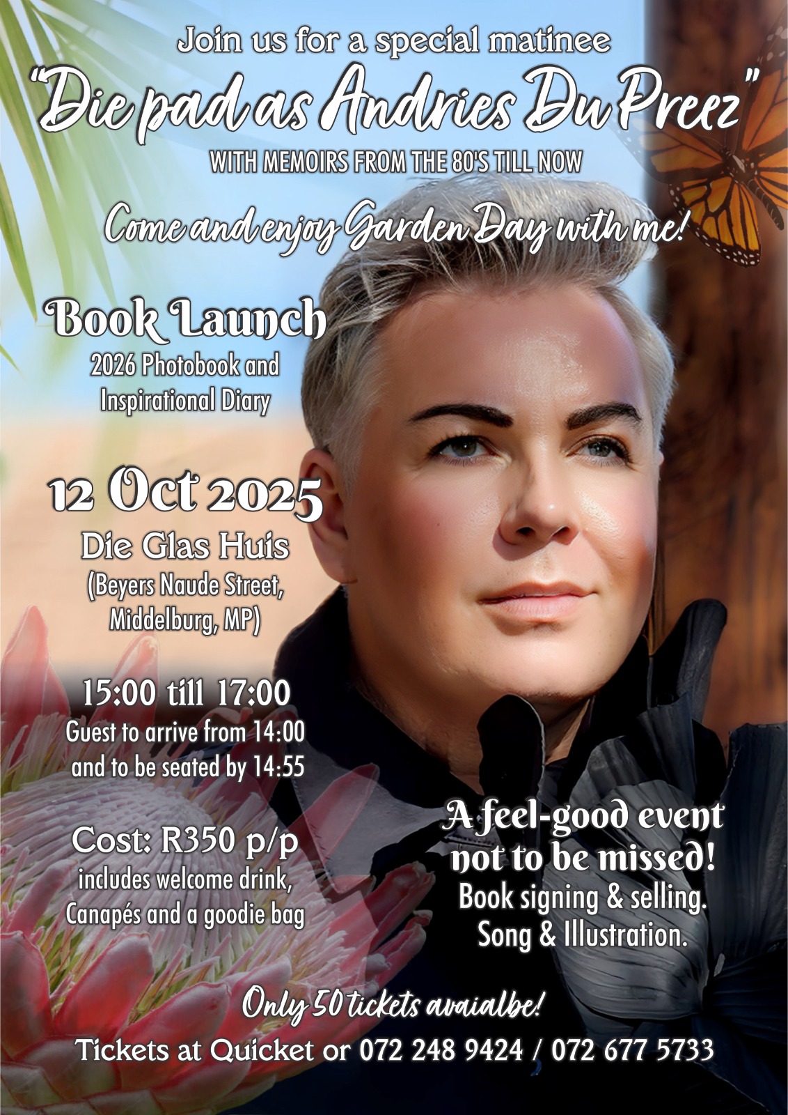 MEMOIRS "Die pad as Andries Du Preez" with memories from the 80's till now! The 2026 Photo & Inspirational Diary Book Launch.