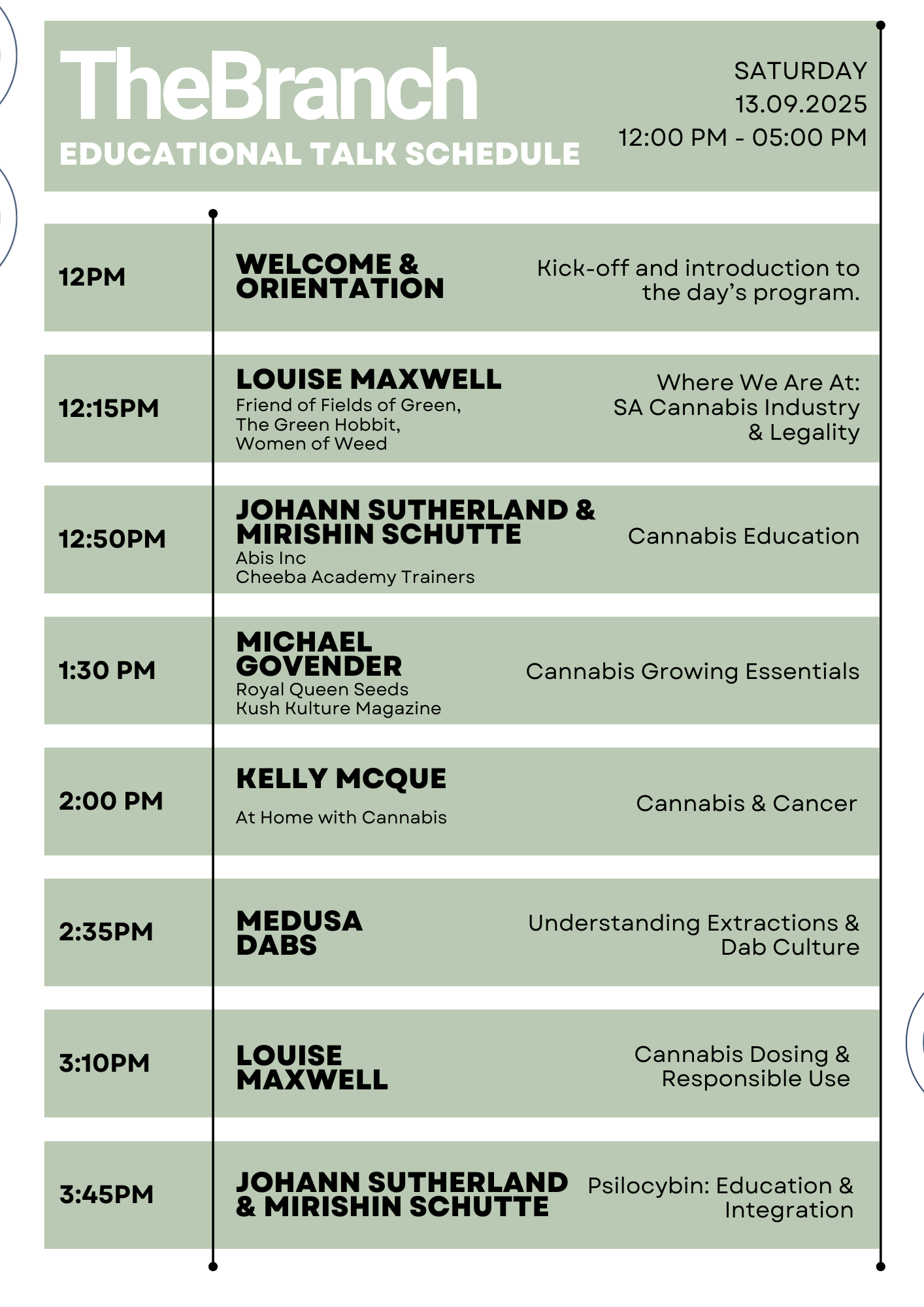 - 12:50 – 1:20 PM ? Mirishin & Johan | Cannabis Education