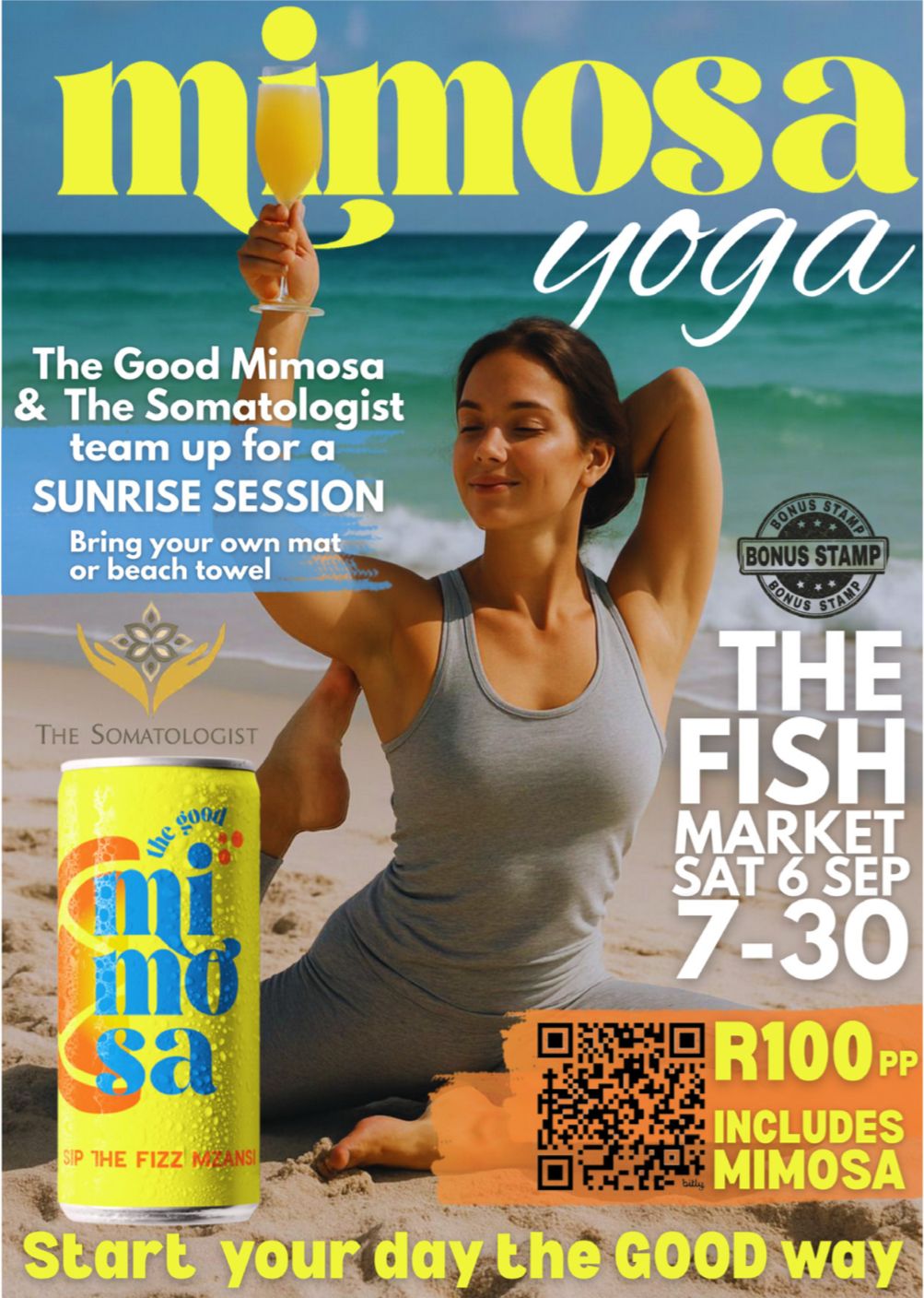 The Good Mimosa and The Somatologist team up for a Sunrise Session for Blomme & Bubbles Festival on Saturday 6 September at 07:30 on the beach in front of Paternoster's Fish Market.