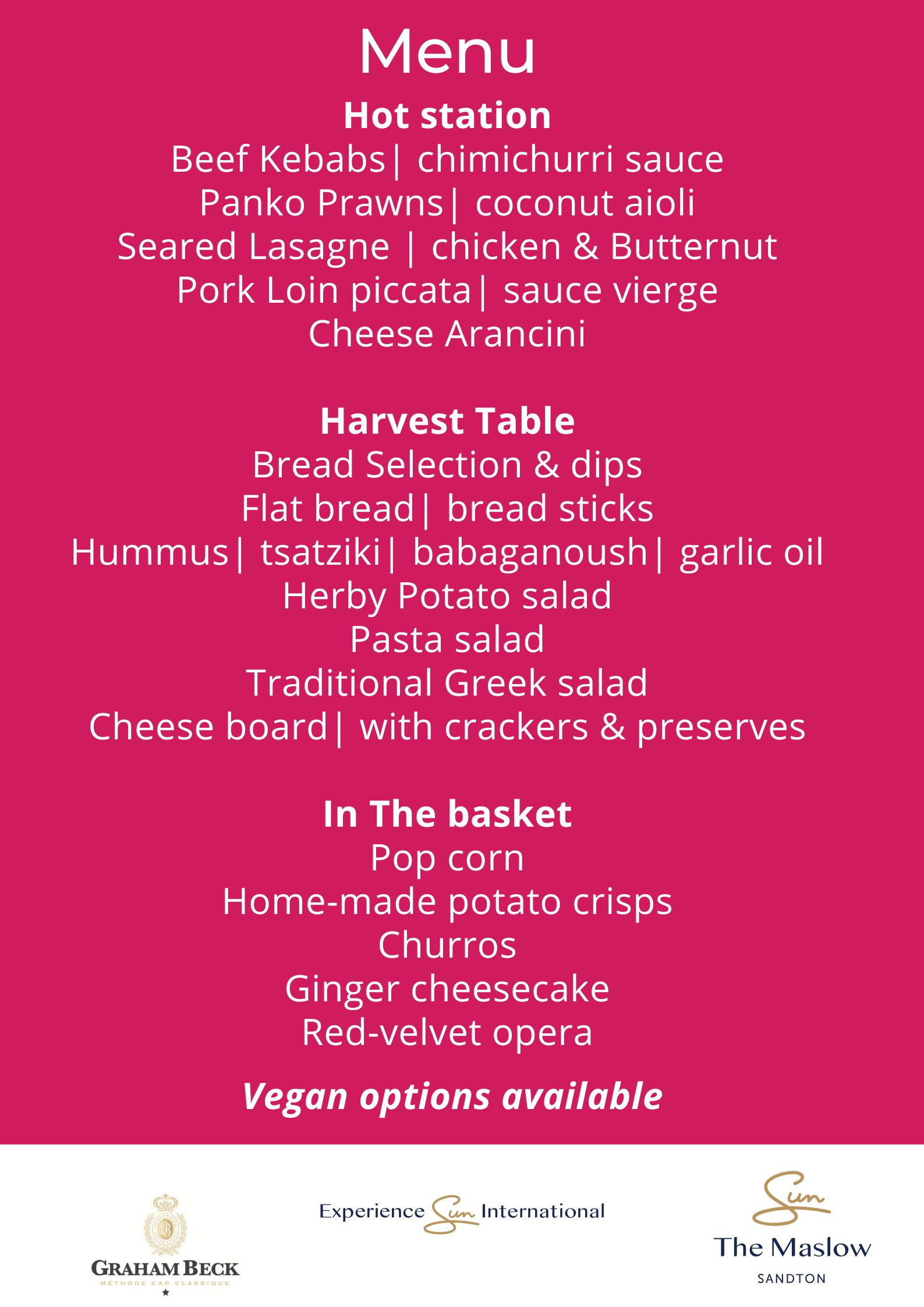 - A welcome glass of Graham Beck bubbly to start the afternoon in style