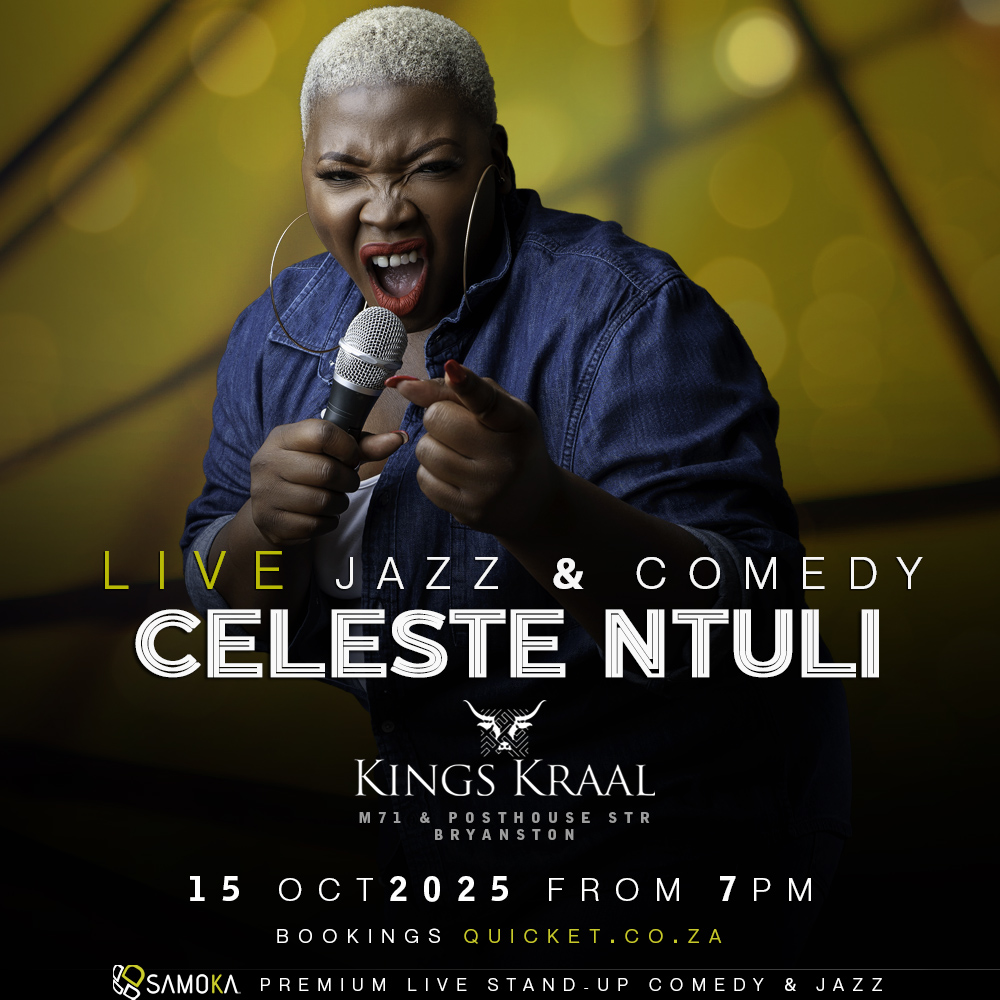 LIVE Jazz & Comedy with Celeste Ntuli at Kings Kraal, Bryanston, JHB 15 October 2025
